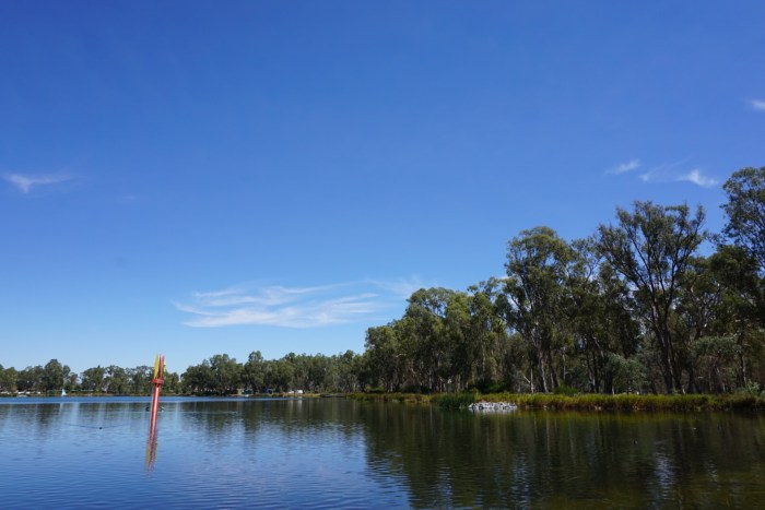 Arriving at Shepparton around 12:30, we immediately donned hats and sunscreen and headed off to the river walk. After a bit of map checking we confirmed the correct track and started off west around Goyen reserve.