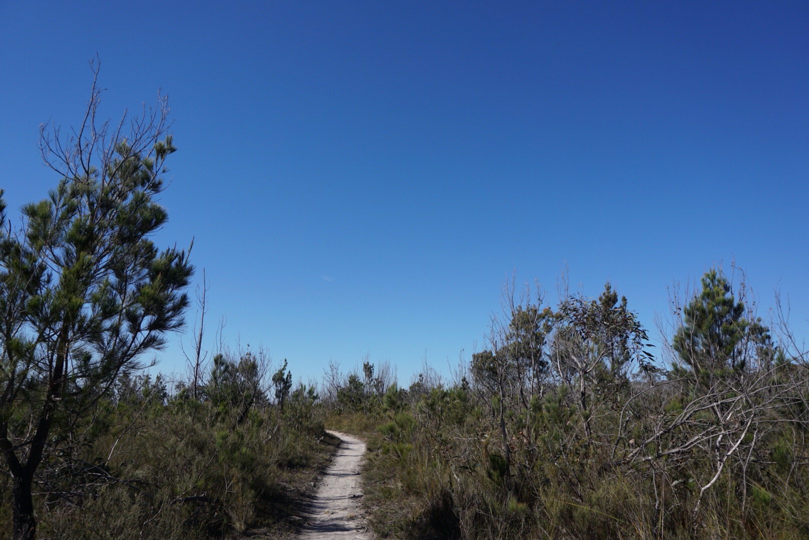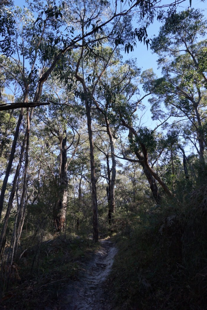 The trail then leaves the gorge, crosses over a four wheel drive track and enters dry, open low scrubby forest. This is where we realised we’d forgotten our hats! The sun was glorious, but late enough in the year we didn’t get sunburnt, phew! The sandy track headed down and down into the next valley floor, the vegetation changing constantly as the trail curves around to the shadow of the hills in the north.
