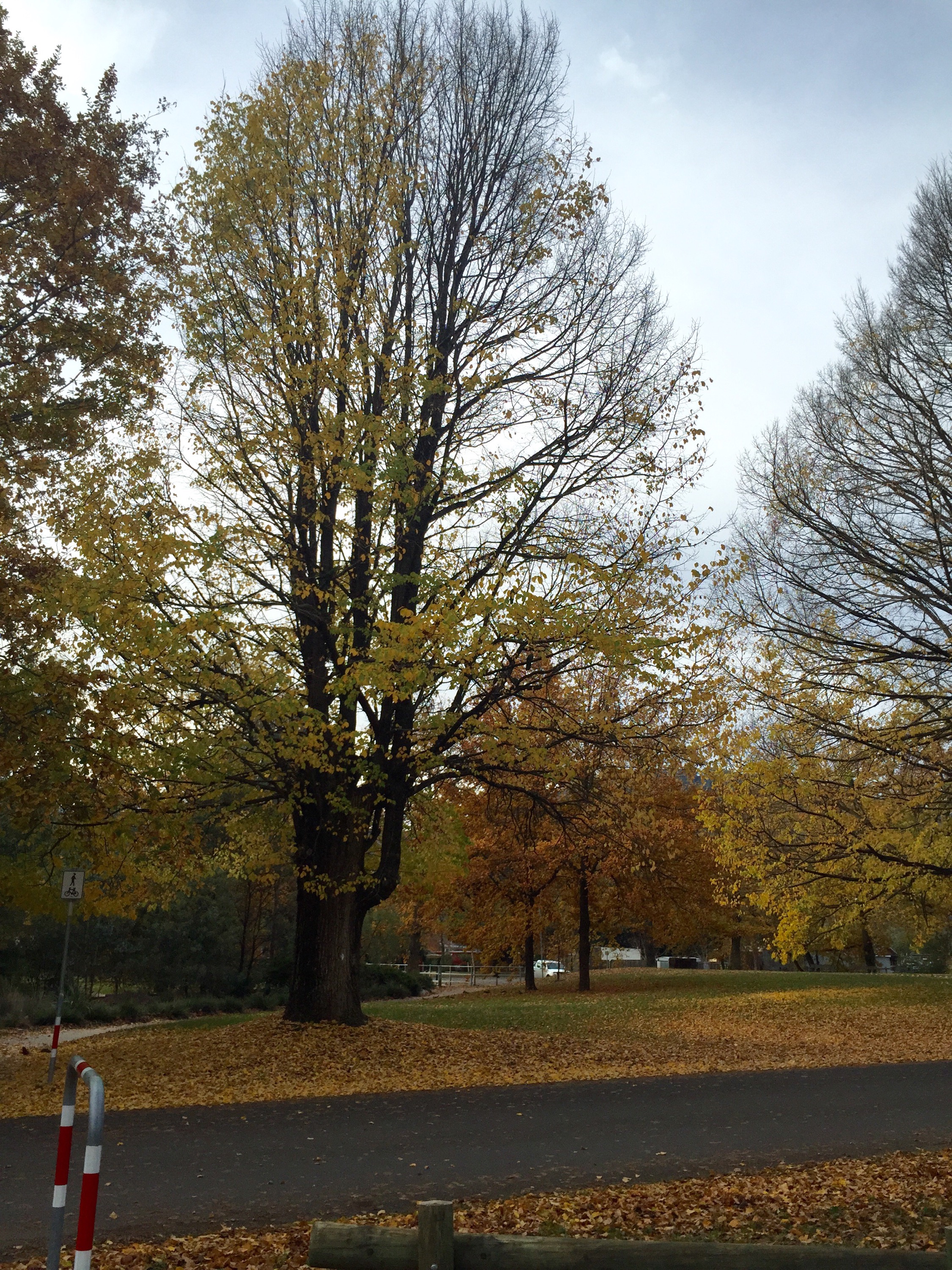 We headed up through the town and to the site of the old timber mill and rail yards. This now forms a park and museum, and the start of the tail trail. Although most of the European trees had shed their leaves for autumn, this area was still beautiful. We were treated to a tribe of king parrots feeding in a fruiting oak tree. Waves of them kept landing briefly to take up an acorn, retuning to the low branches to nibble, dropping the husk then flying down again. We stood under the oak for about fifteen minutes, grinning like loons as these beautiful large parrots repeatedly swioped down to our feet and fed.
