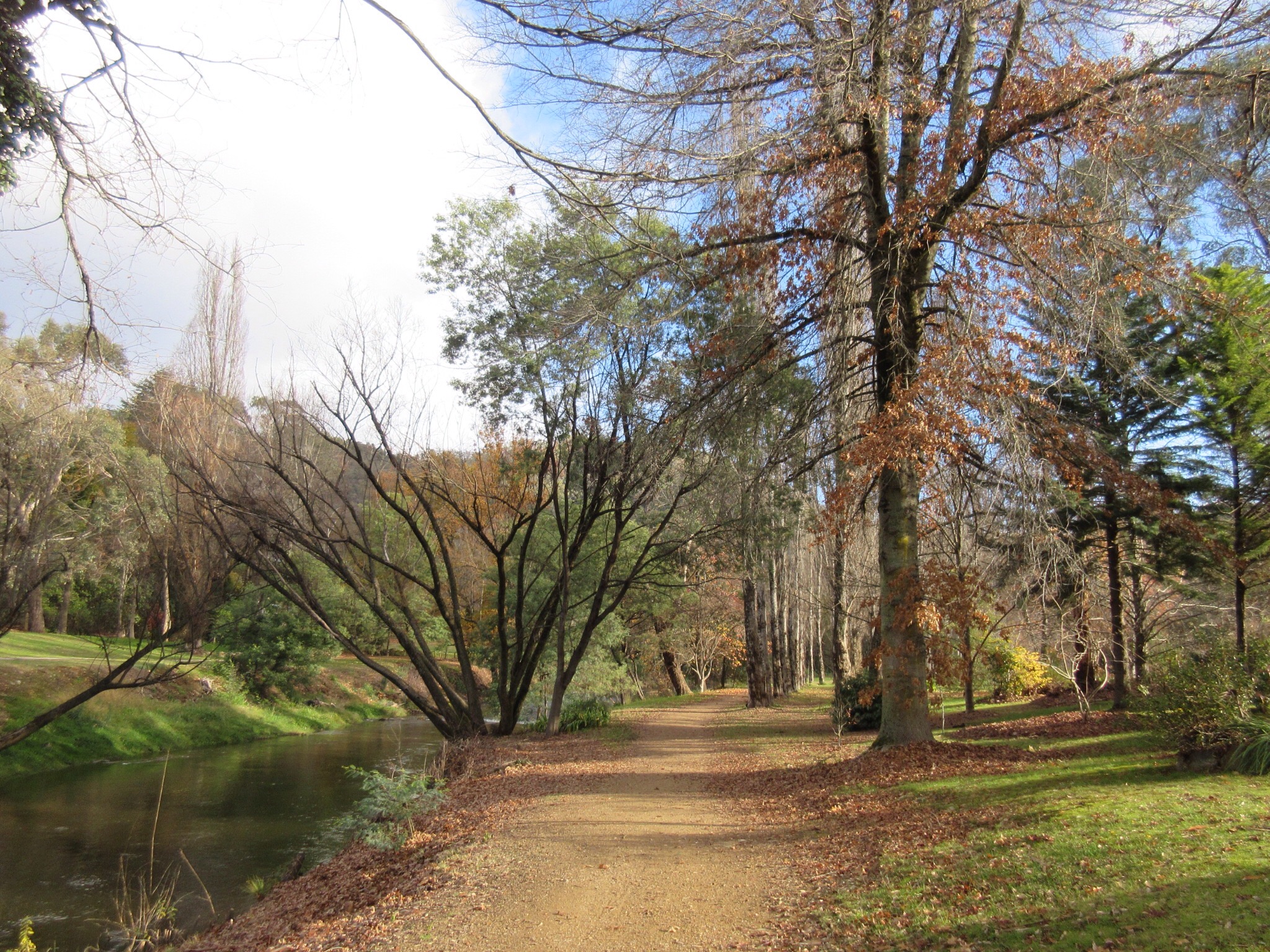 On our second visit, we were in town a bit earlier and decided to walk the canyon walk that skirts along the Ovens river banks. This starts in the town as well.