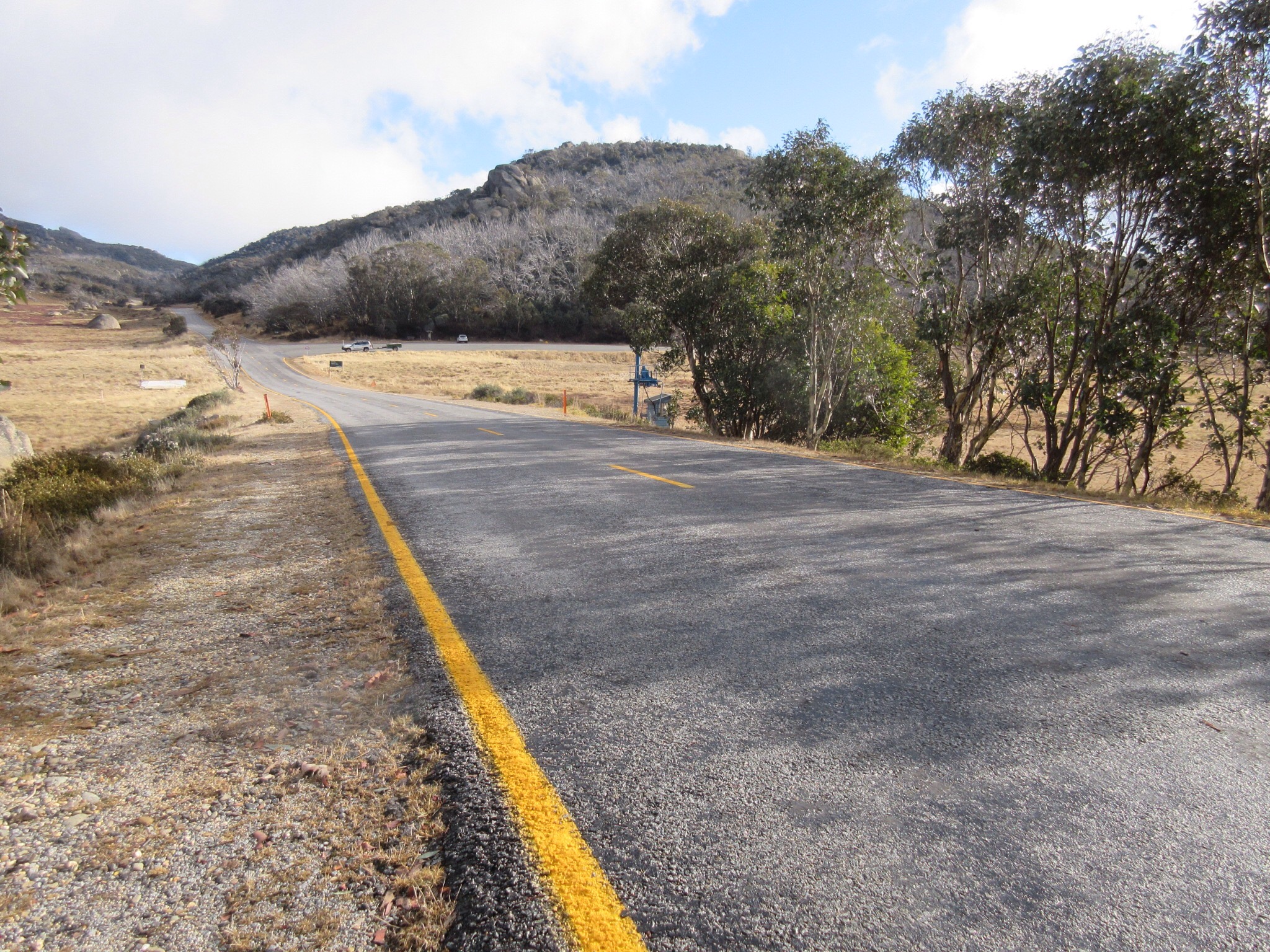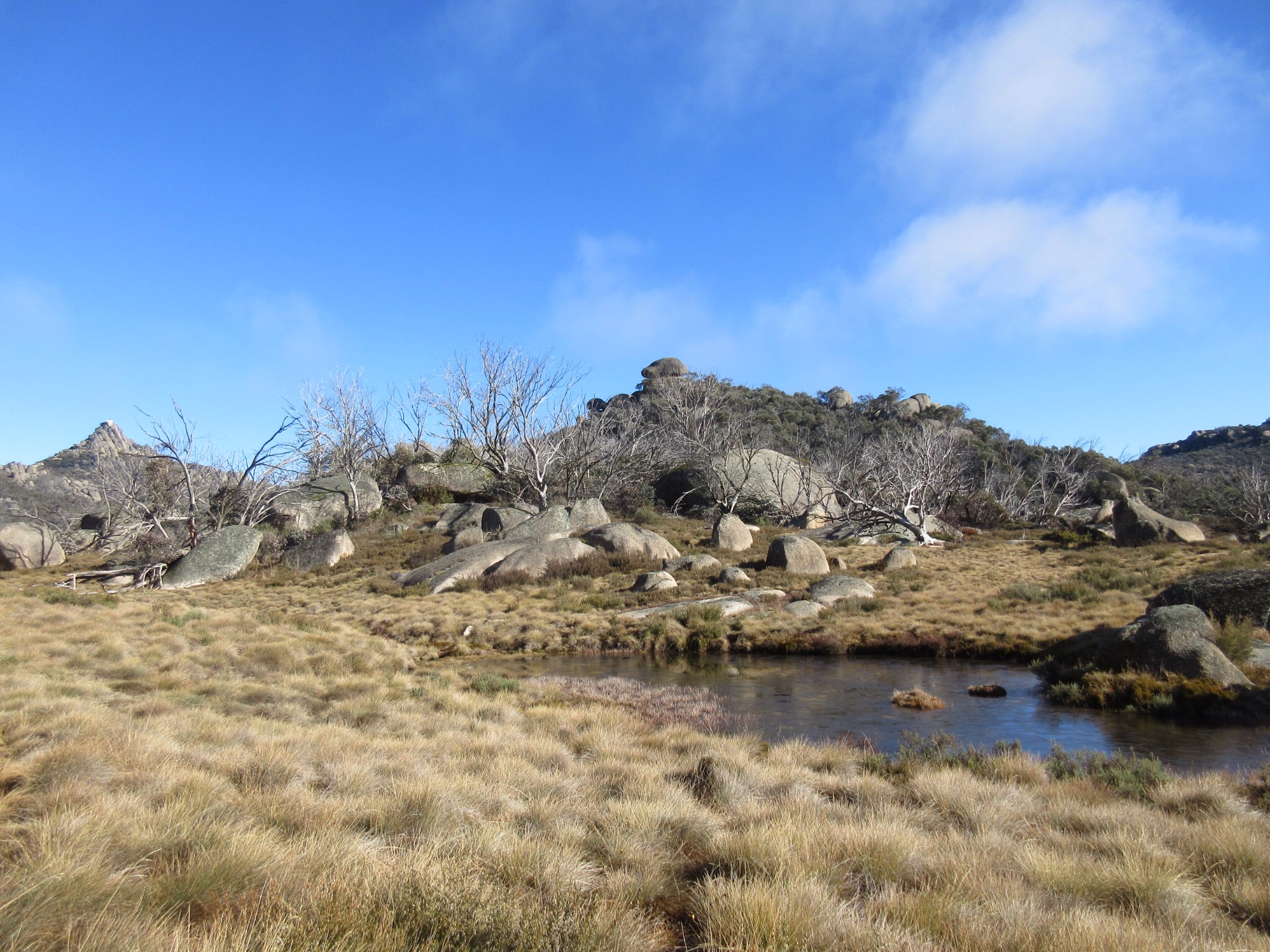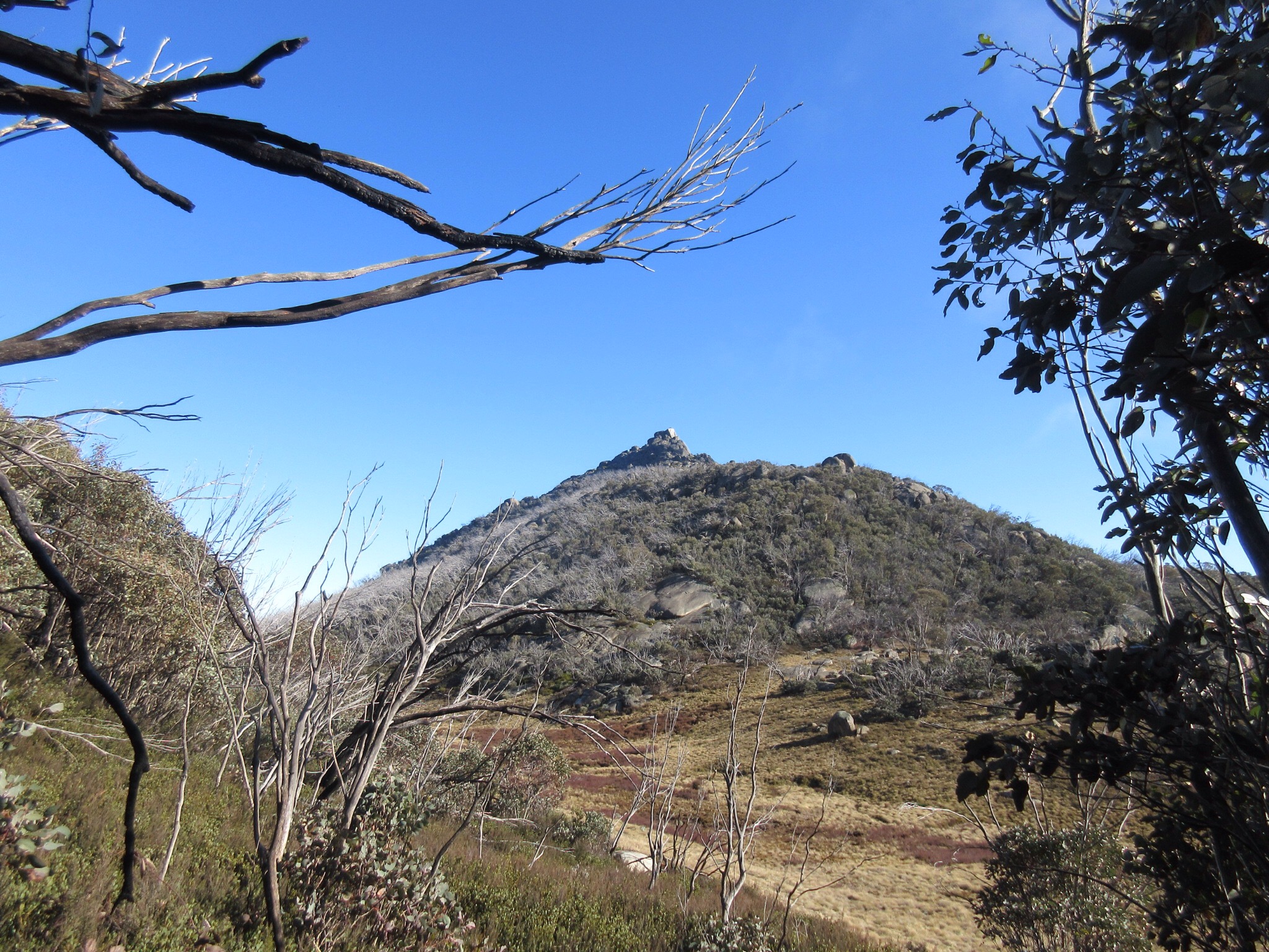 We arrived back at the car park at 2:15pm. We found out later that this is the site of a lodge that burned down in 2006. We lucked another intensely enjoyable sun-drenched frosty day of walking on Mount Buffalo, and will definitely return to do this walk again, hopefully in Spring.