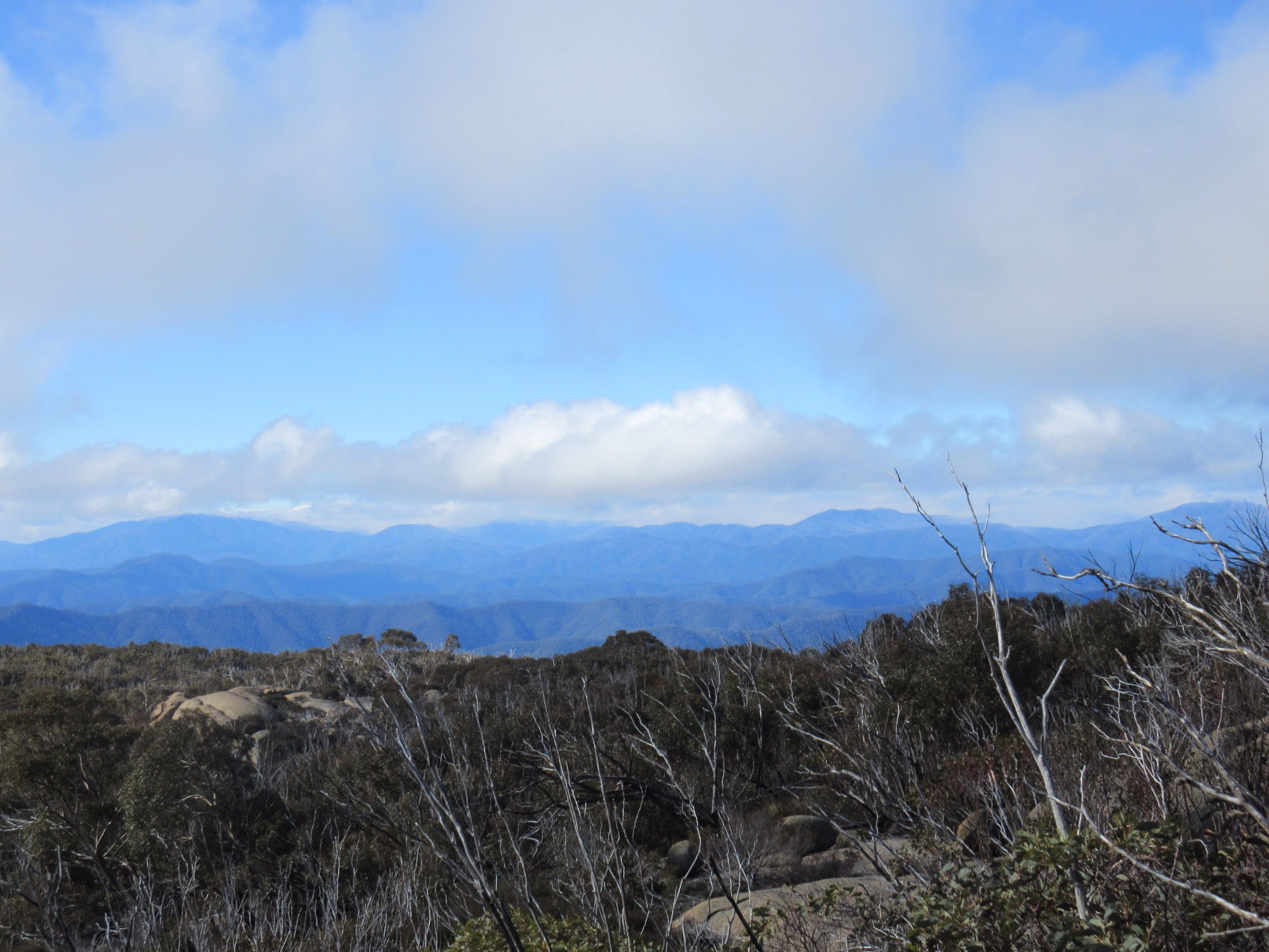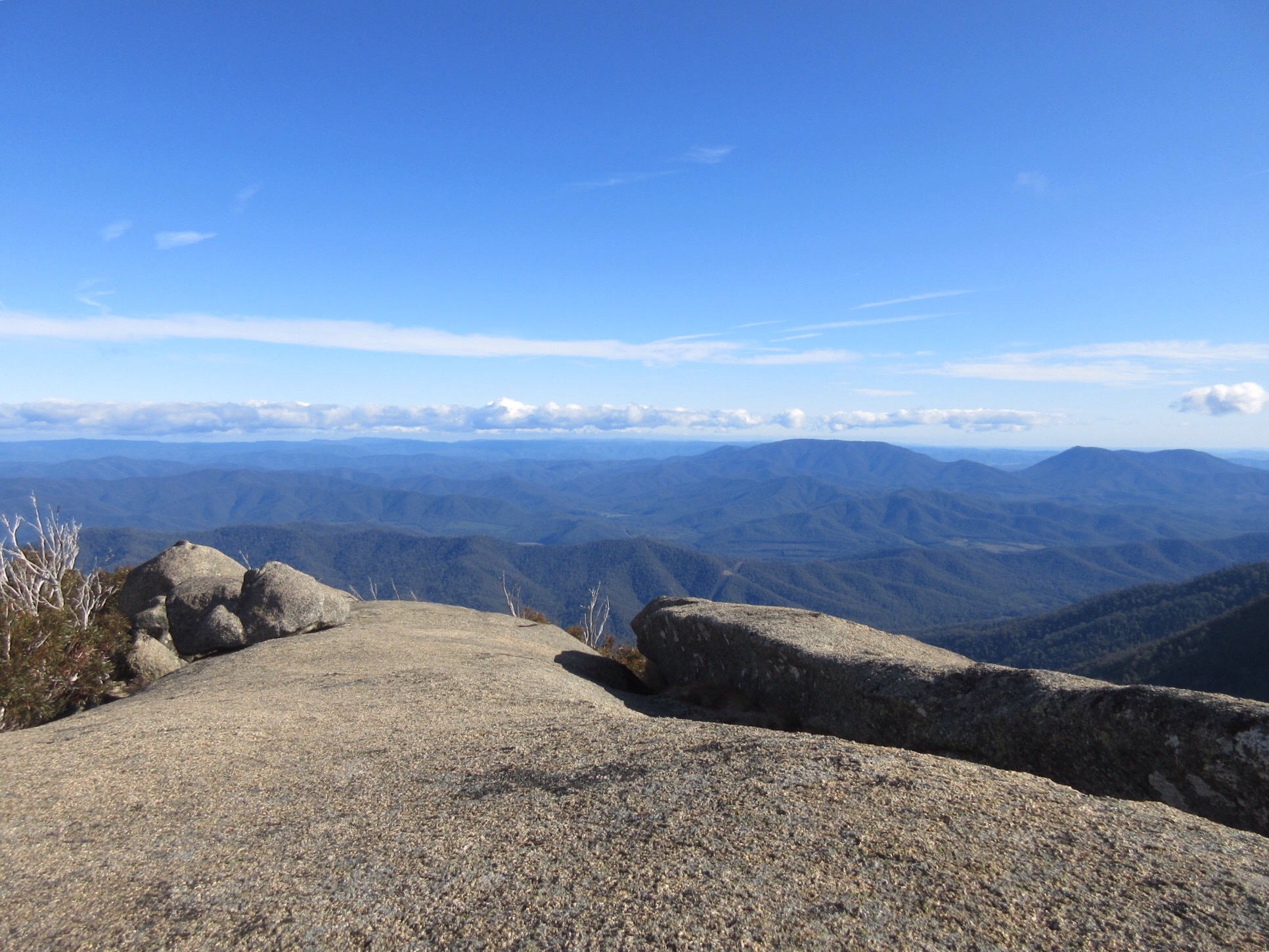 We reached the back wall around 12:30pm and stopped for lunch, enjoying the views. The Back Wall looks south over the edge of the Mount Buffalo National park, and into the distance of the Alpine National park, so the vistas were glorious. The edge is absolutely precipitous, so not recommended for small children or the very nervous…