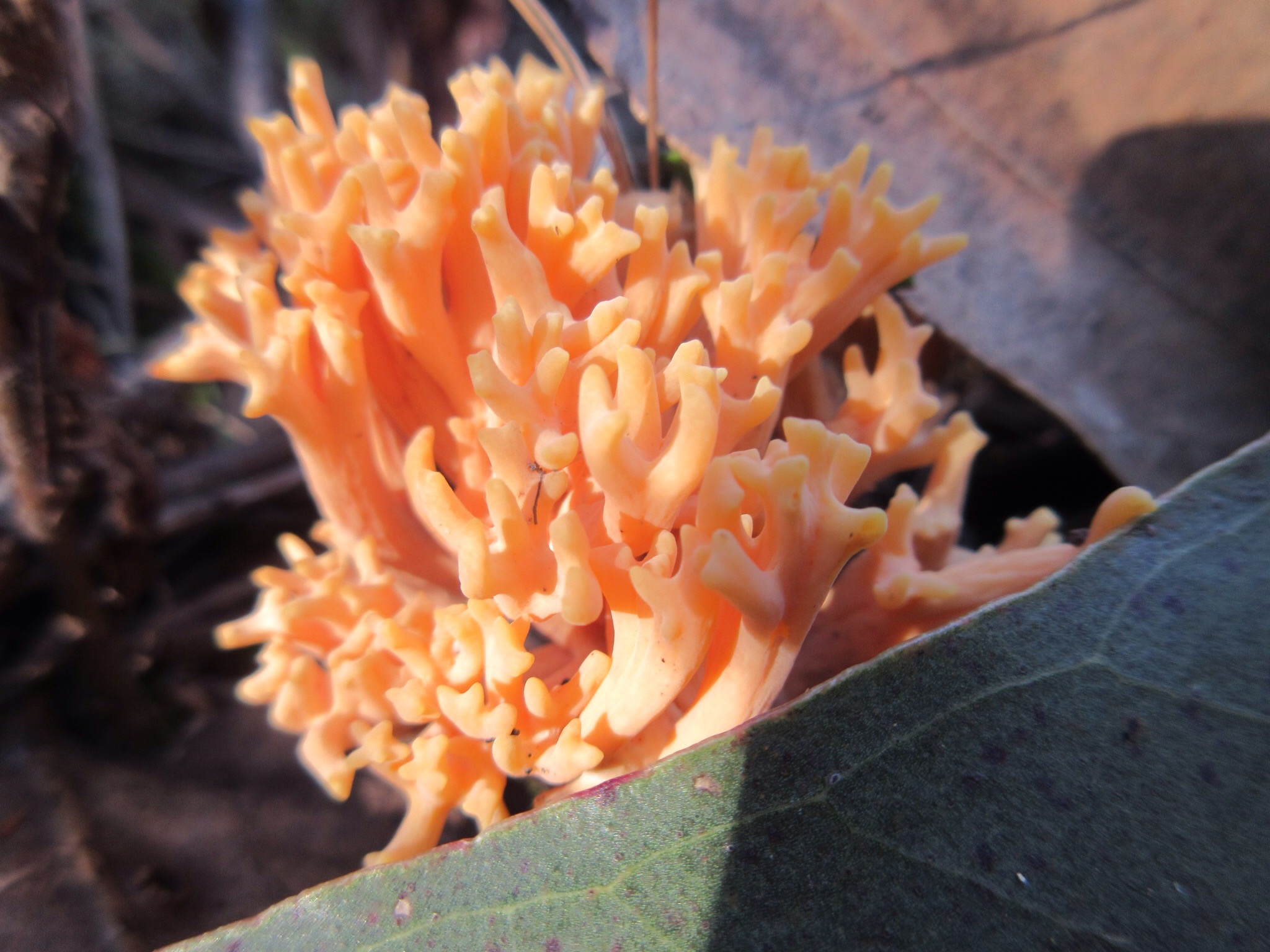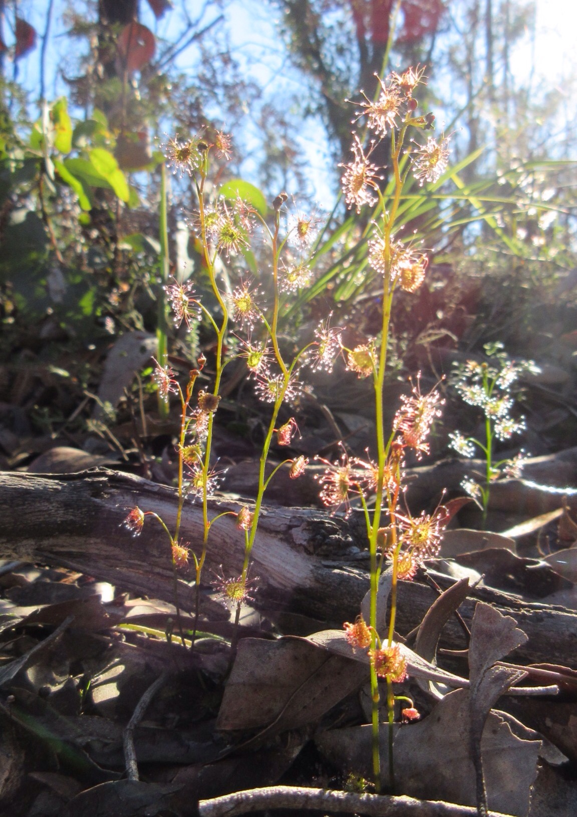 We followed the clear foot track through the forest and then left onto a fire trail heading towards Painkalac dam. The fire trail was just as pleasant walking – the sides were rimmed with moss, sun dews and lichens (and the occasional fungus) the vegetation brought changes with every turn in the road, and the forest was alive with birds.