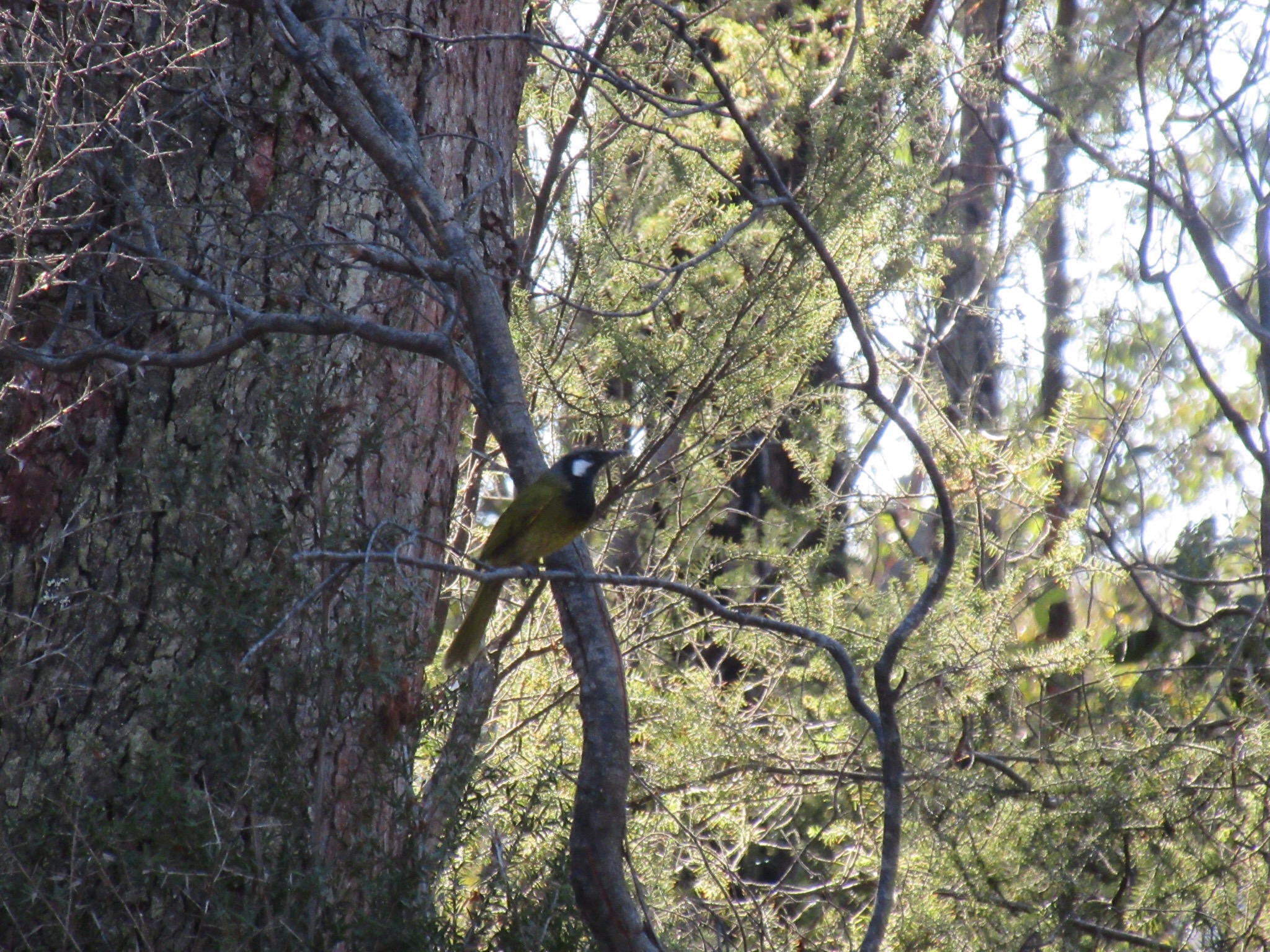 We reached Painkalac Dam around 11am and decided to keep walking and have a break at Moggs creek. The fire trail winds steadily up hill from the dam to the Gentle Annie track, so we needed a snack partway up. We ate standing on the track, sharing a small bag of scroggin. As usual, once we stopped moving, we could hear birds all around us, and it wasn’t long before we spotted a pair of white eared honey eaters chasing each other around in the nearby undergrowth. They stopped obligingly a couple of times and we managed to get a photo. Then we noticed the eastern spine bill hanging around as well, hopping from branch to branch.