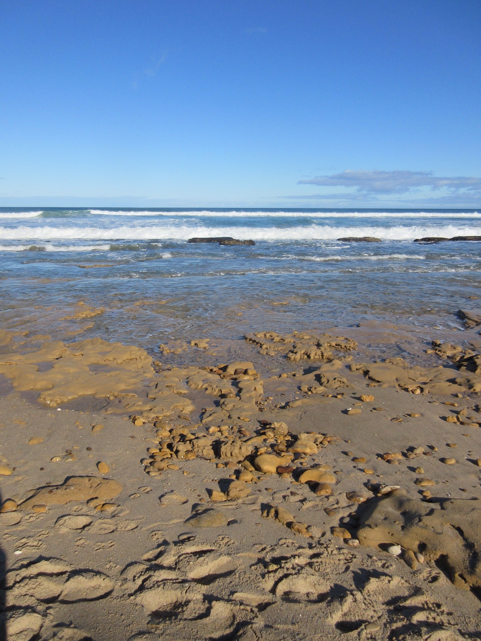 Then the beach walk back to the lighthouse. I hate beach walking, but the first two thirds of this walk were on hard flat sand, so it wasn’t too bad. The final third of the walk the tide was getting closer, the beach was sloped and rocky in places, and the wet sand was fairly soft, so I was very glad when we crossed the Painkalac creek and stepped back on sold ground at Aireys Inlet. From there it was a short walk back up the hill through the town streets to the car at around 2:30pm.
