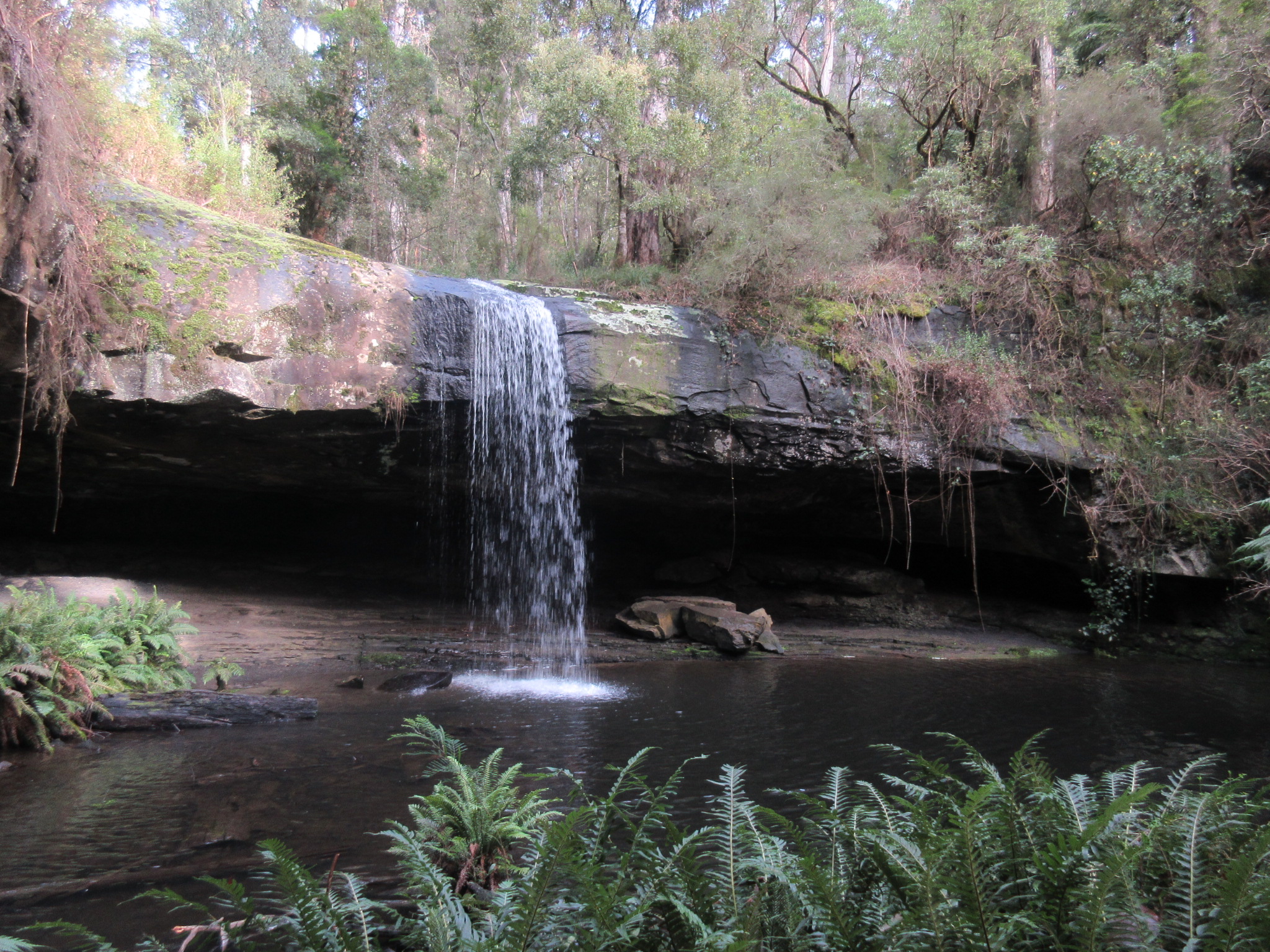 It didn’t feel like the river had THAT much water in it, so we felt a bit cheated by the whole experience. What’s the point of going to a waterfall after all, if there isn’t a bit of water around to make the falls worth visiting? On the other hand, looking around at other blog posts, like this one and this one, these folk seem to have a lot less water in their rock hopping pictures than we did… I guess that’s the price of walking in June instead of January. Also, after consulting our track note maps back at home, the path is shown as crossing the river quite a way after Jebbs pool – so I’m not really sure after all if we were trying to cross where everyone else was. We’ll just have to retry another time of year. I guess that’s why Parks Vic doesn’t signpost the walk on the highway…