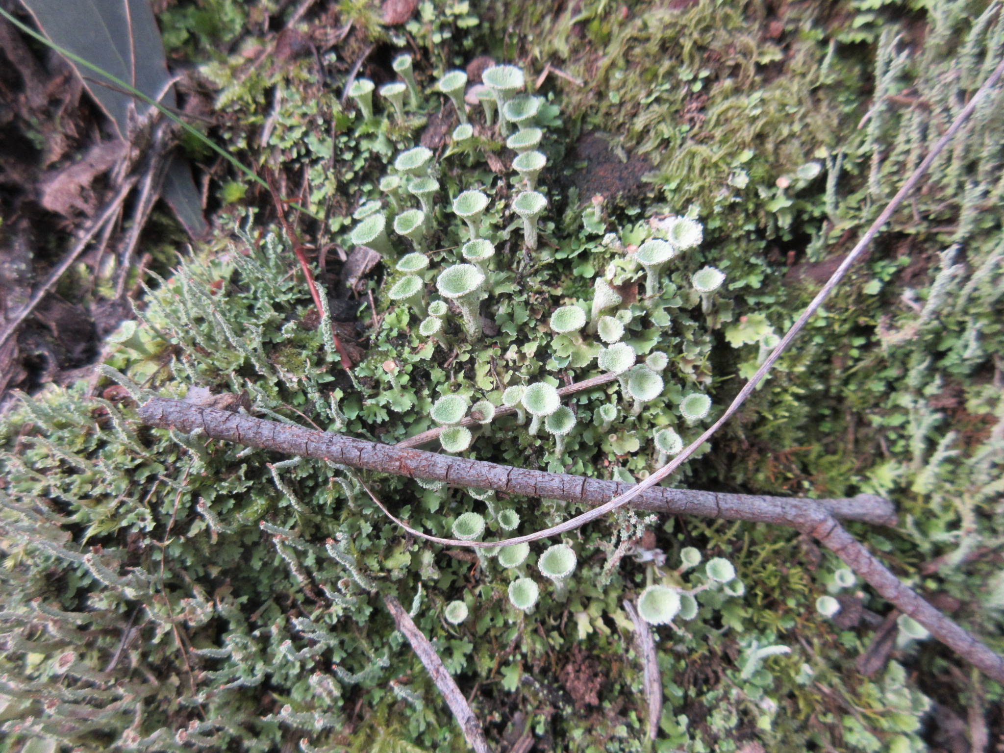 I tried not to stop every twenty metres to take photos of fungi as we returned to the junction with the link track that would lead us up to the Garvey track. Honestly this was a struggle, as there were so many interesting tiny/weird/slimy things to look at. But we had other walks to do on this day, so I tried not to get too distracted. We climbed up the zigzag of the link track and reached the Garvey track where we paused for breath, a drink and a snack. And I took about twenty photos of the tiny coral fungi in the moss under the sign. *cough* Well we were stopping ANYWAY.