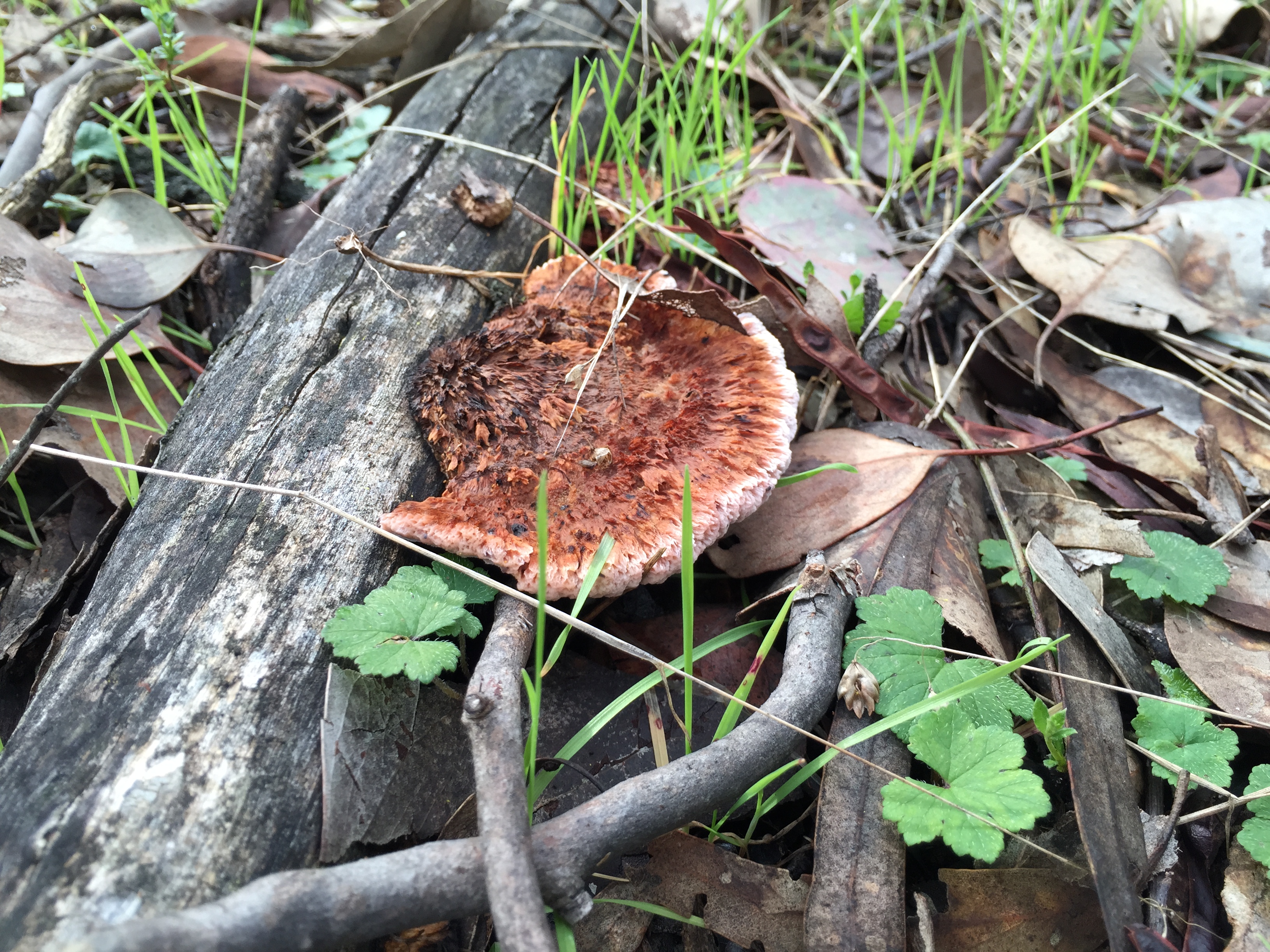 At about the two hour point we reached the signposted ‘quiet area’ where some logs have been set aside in a clearing off the track, and it’s suggested you stop and have a break. We did just this, munching on scroggin as the birds in the area hopped on the ground and up and down the trunks all around us. After break (and some surreptitious photos of fungi by me…) we were back on our way.