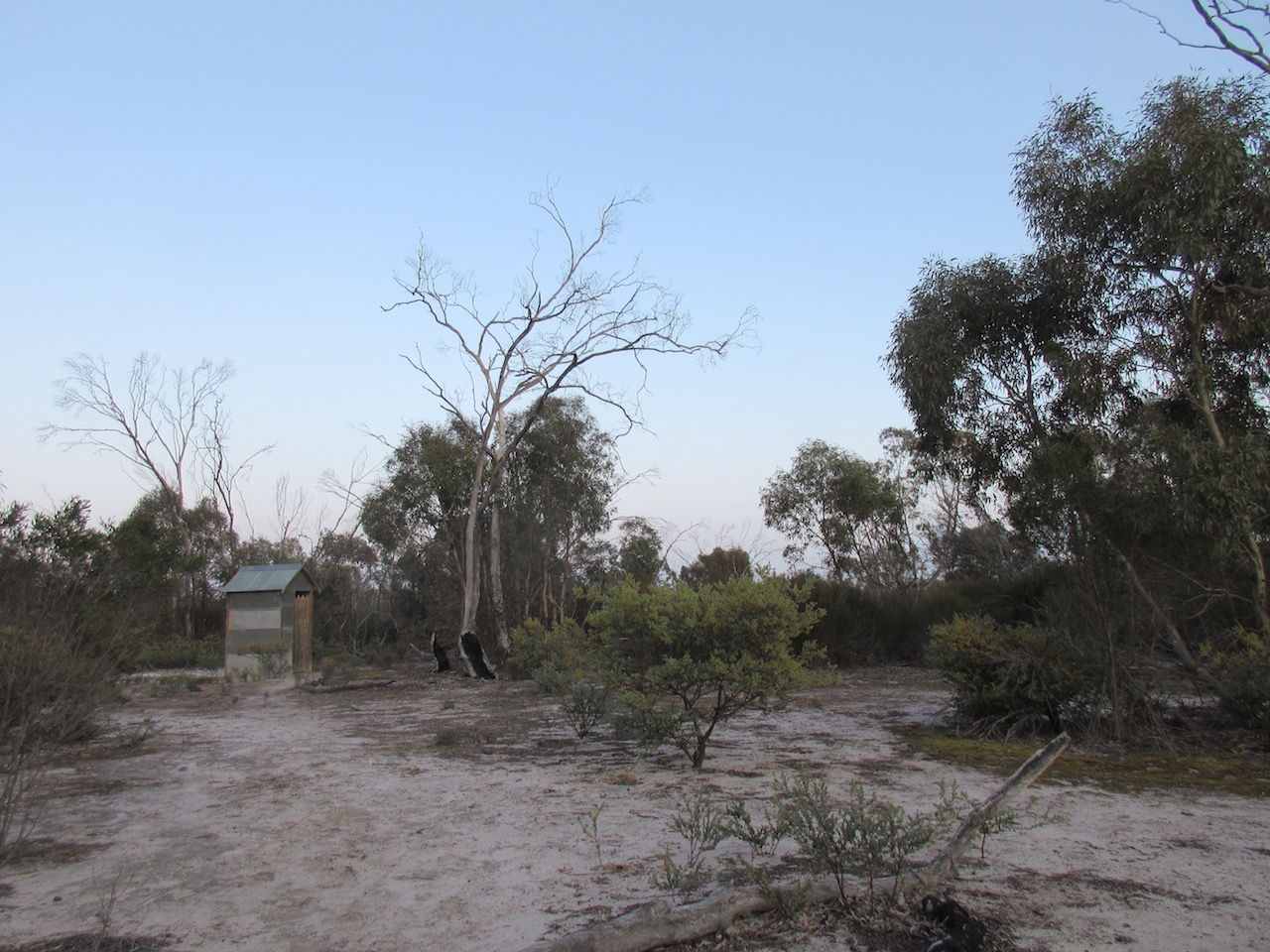 I loved the Yellowgums campsite. The spot we chose to pitch our tent probably wouldn’t work in windy weather: the pegs were only lightly sitting in the sand. But there was plenty of shade and places to sit. There were birds around the whole time we were there, afternoon, night and morning. A kangaroo hopped through during the evening. It was a pretty place. It’s just a shame the tank and shelter exuded the death smell.